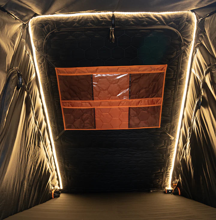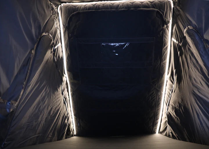 The Aspen Lite rooftop tent is the perfect solution for adventurers who want the convenience of a tent but don't want to carry the extra weight. Weighing in at just one hundred and ten pounds, this tent is easy to install and is the perfect size for two adults. Its quick deployment system ensures that your tent is up and ready in seconds not minutes. Its waterproof fabric and aluminum frame construction ensures that you'll stay warm and dry in any weather. This tent includes two large windows and large entry door makes it easy to get in and out from any side. The Aspen Lite rooftop tent also includes our self-inflating mattress, making it a great choice for a comfortable and relaxing night's sleep, telescopic ladder, and shoe bags. Whether you're camping in the backcountry or just stopping for a quick rest along the way, this tent is sure to provide you with a comfortable, safe, and enjoyable experience.